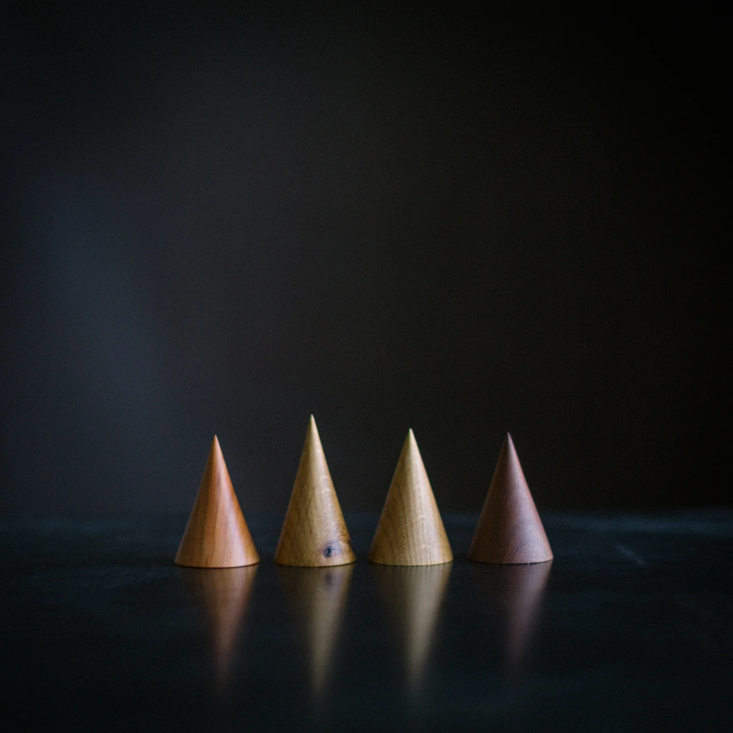 I can’t think of a better way to describe his work. Tactile, interactive, and stunning, his objects are things with which I dream of filling my home: abstract chess sets, wooden bowls, spinning tops, his “writer’s block” lamp, all in shades and textures of wood I haven’t yet learned to name. And now, I dream of sitting at this table, juxtaposed with white walls and bathed in filtered sunlight. There’s something very In Praise of Shadows about it.