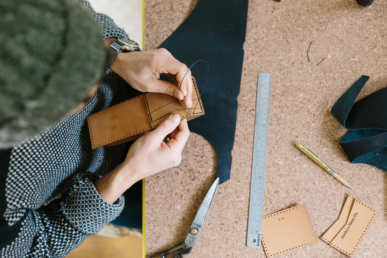 Finishing the last stitch on a new product and putting my bank cards in it. Sometimes everything comes together like you want it to, and when that happens, it's very satisfying. Seeing my friends using my wallets is also pretty cool, most of them have one now and it's great to see how they are aging differently.